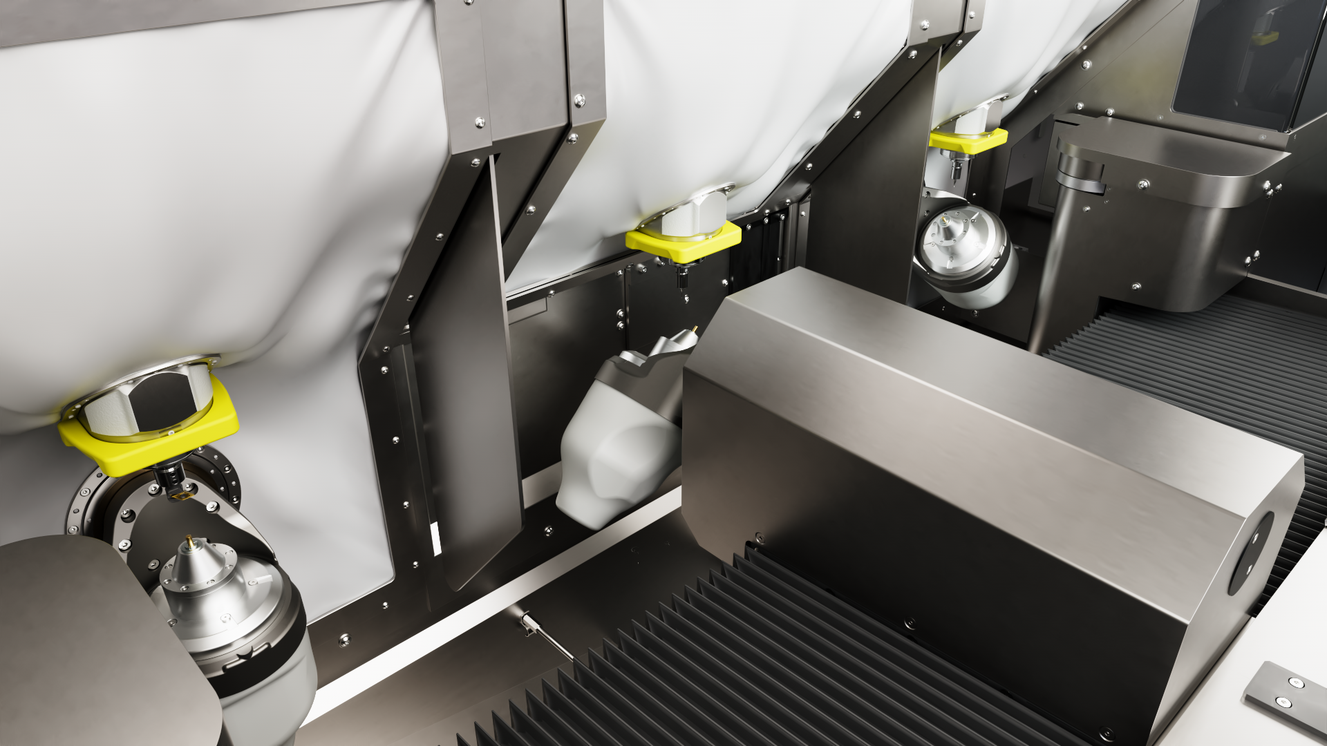 The K5-TRIO multistation 5-axis machining center is part of an innovative concept that involves having production equipment that is scaled to the parts to be manufactured. The precision and rigidity of this compact machine come from extremely short force loops and limited moving masses. The three stations enable a finished part to be obtained at the machine output in a short machining time, as operations and counter-operations are performed in parallel.